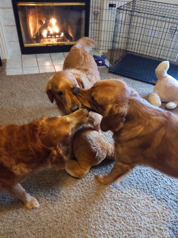 Believe it or not, by the way, the puppers are fighting over the torn off tail of a very large stuffed dog. They have a hundred toys in the box, but that was the object of the day’s affection! 🤣